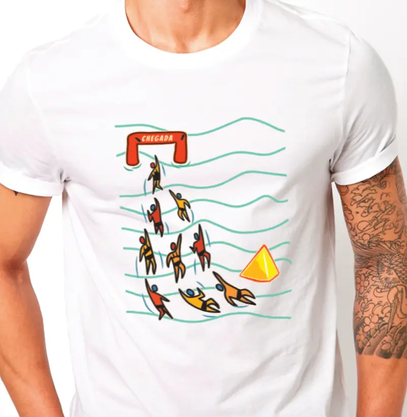 Nada melhor que ver o pórtico da linha de chegada no mar! Nossa nova estampa é pra quem vive a emoção das águas abertas e sabe que cada braçada é uma conquista! 🏊♂️✨ Confeccionadas em algodão de alta qualidade, as camisetas da SemBordas são leves, confortáveis e perfeitas pra mostrar sua paixão pelo mar no dia a dia.